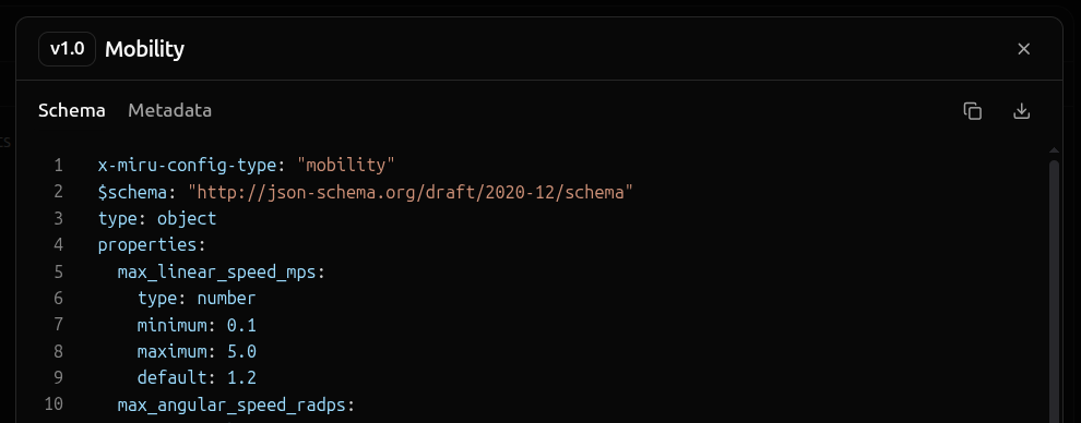 To view a schema in Miru, navigate to the Config Types page and click into the config type which contains the schema you want to view.