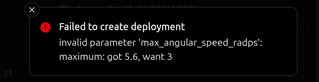 max_angular_speed_radps field exceeds the maximum allowed value of 3.0.