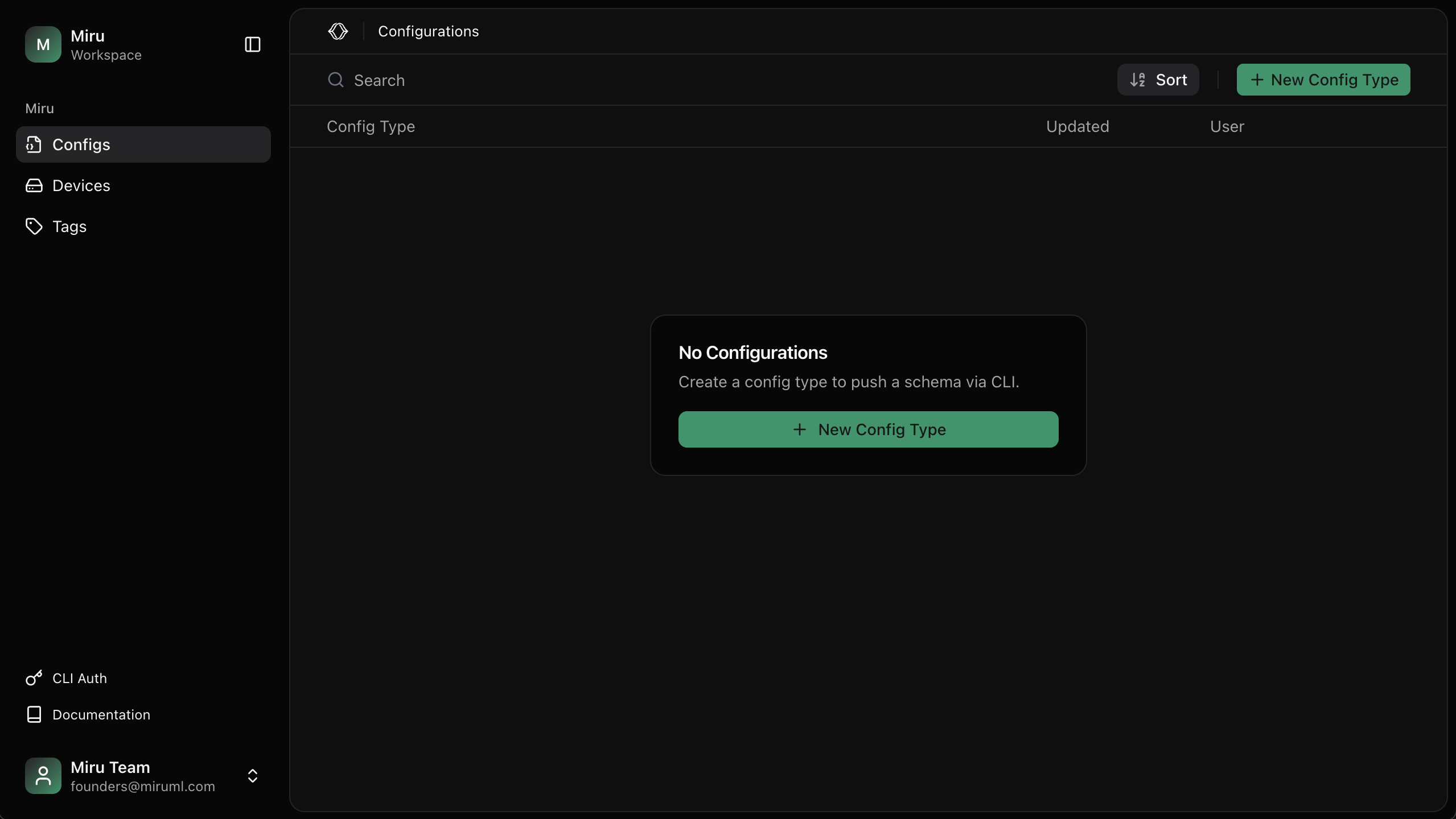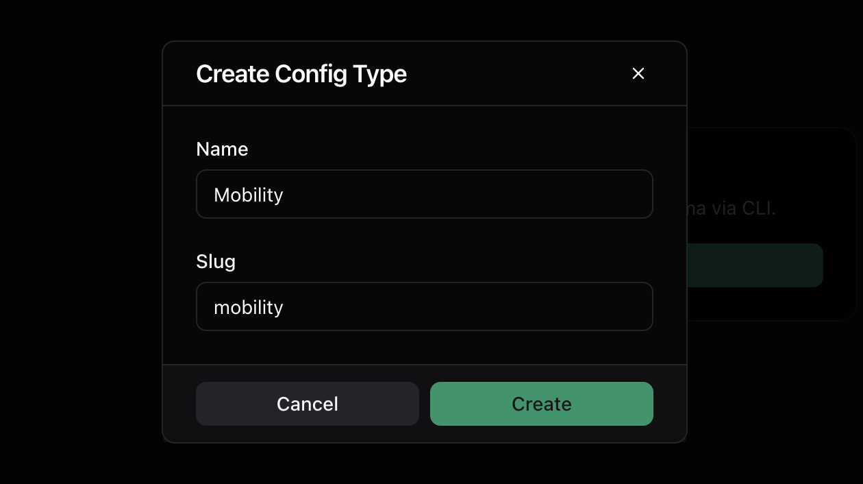 The first step in defining a config is creating its config type. Navigate to the Config Types page.