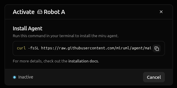Open a terminal on the device where you want to install the Miru Agent and paste the installation command.Prerequisites: