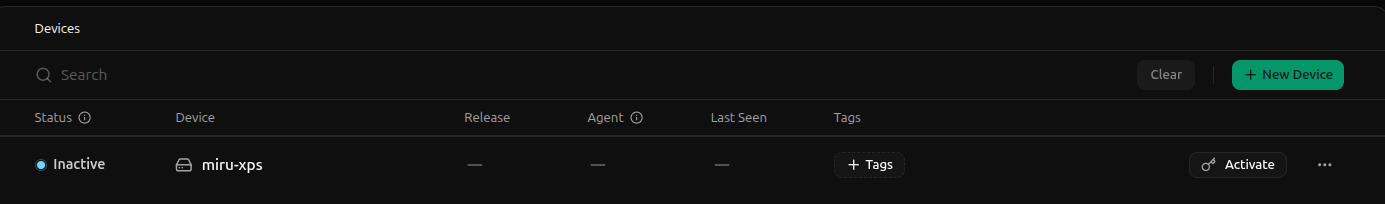 Navigate to the Devices page and click the New Device button in the top right corner.