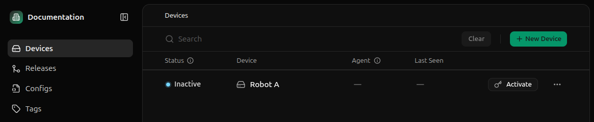 Click the Activate button on the device you just created.