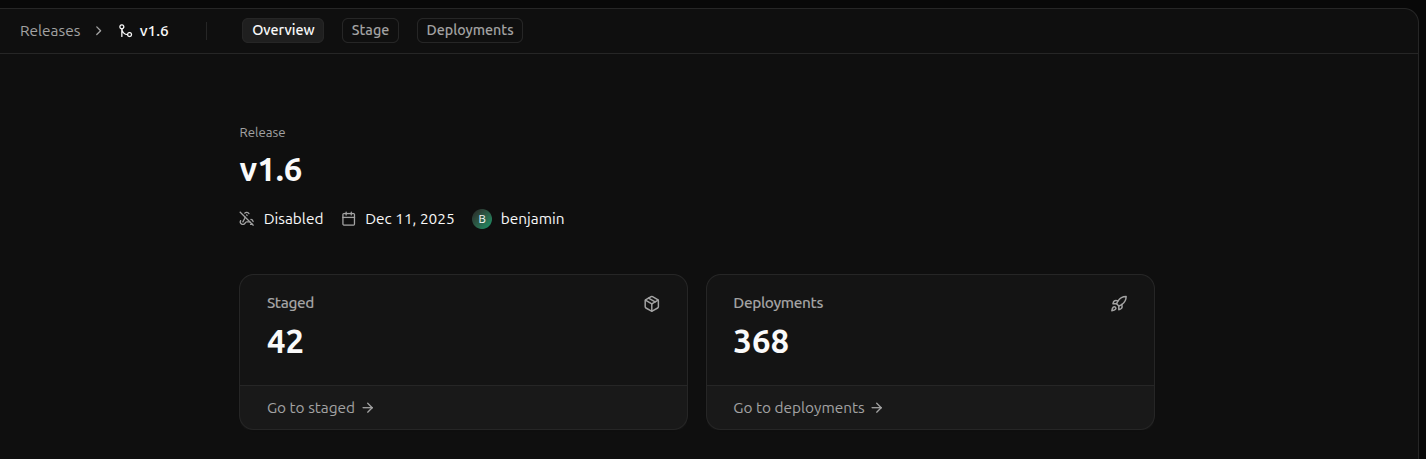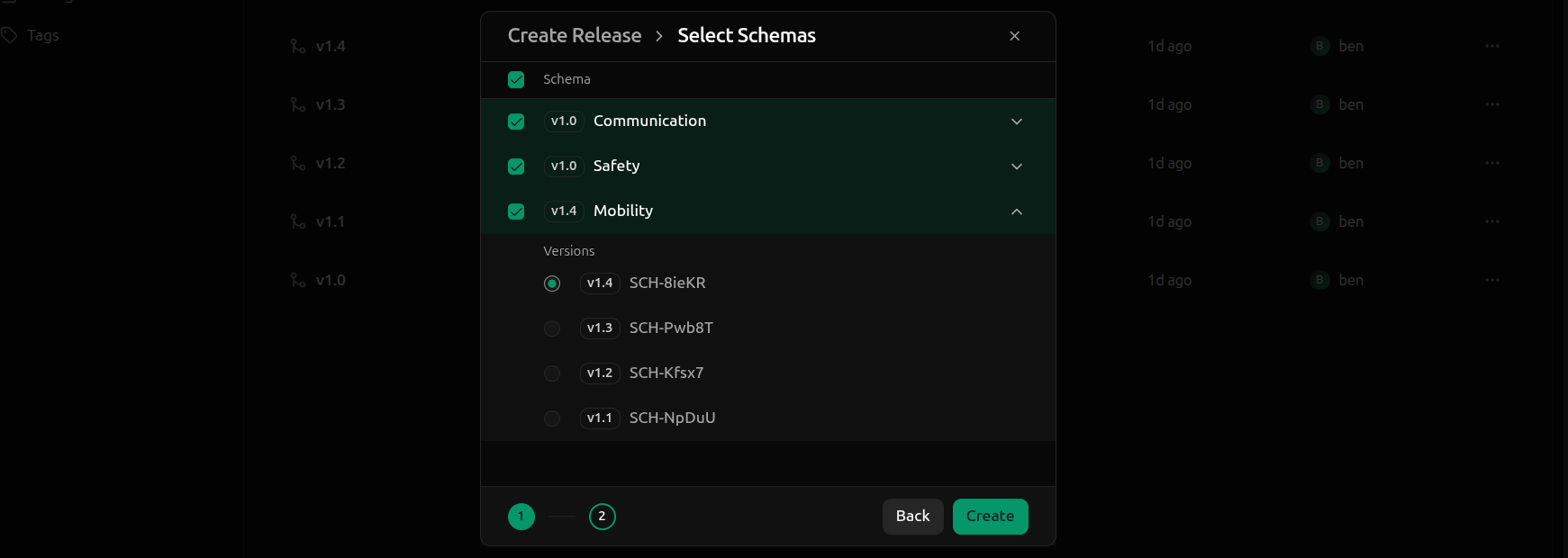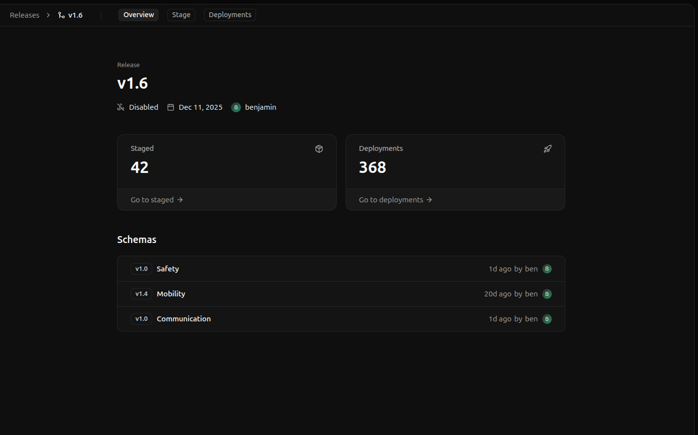 Dashboard To view a release and its schemas, click into the release from the releases page and switch to the Overview tab at the top.